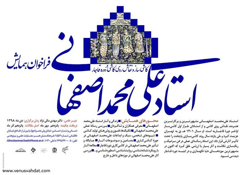 فرهنگستان هنـر جمهوری اسلامی ایران، همایش «استاد علیمحمد اصفهانی» را در دیماه ۱۳۹۸ برگزار می کند.